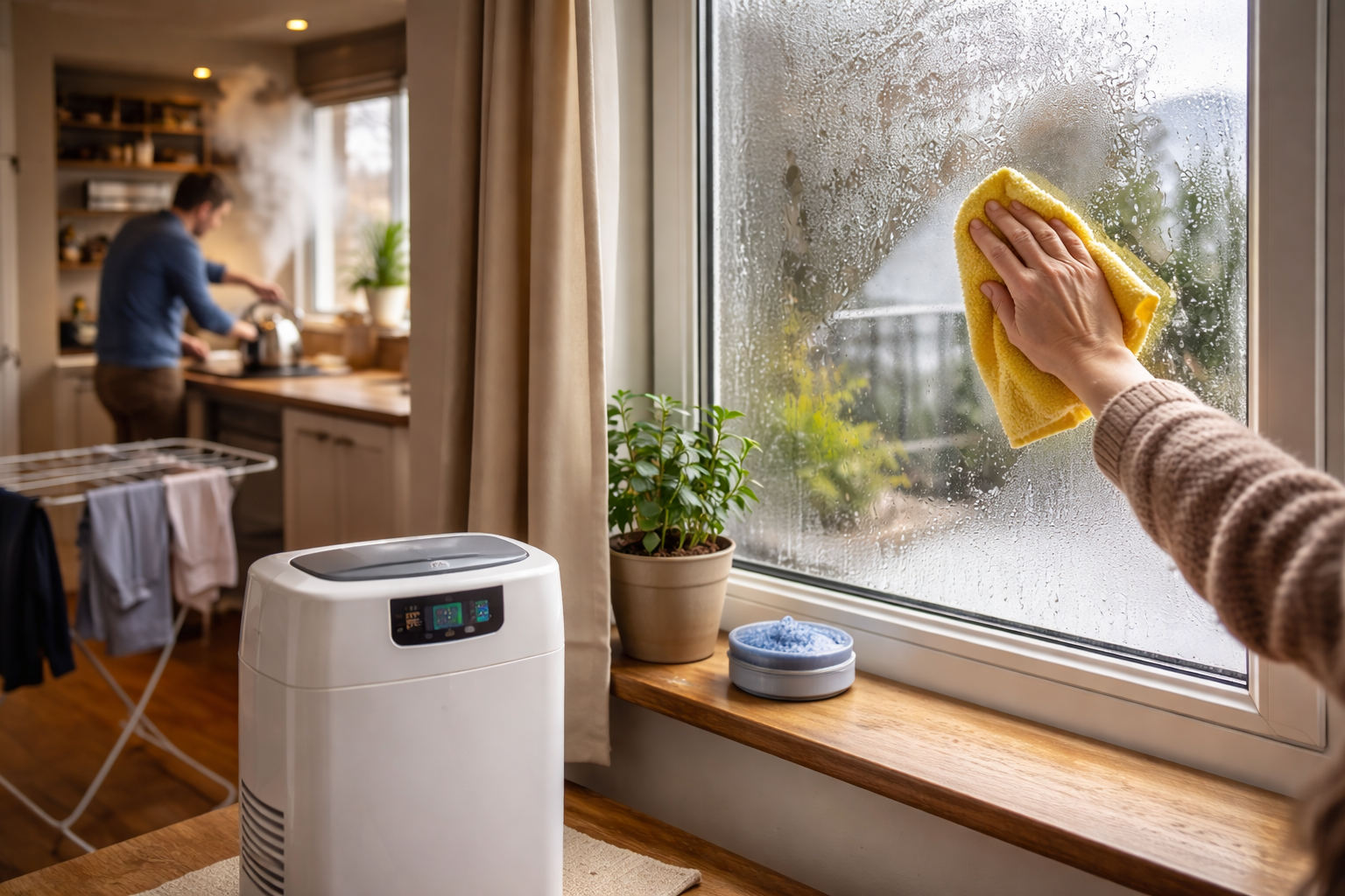 Reducing moisture at its source makes a noticeable difference. Dry clothes outside when conditions allow or use a vented dryer. Keep lids on pans and avoid leaving damp towels around the home.